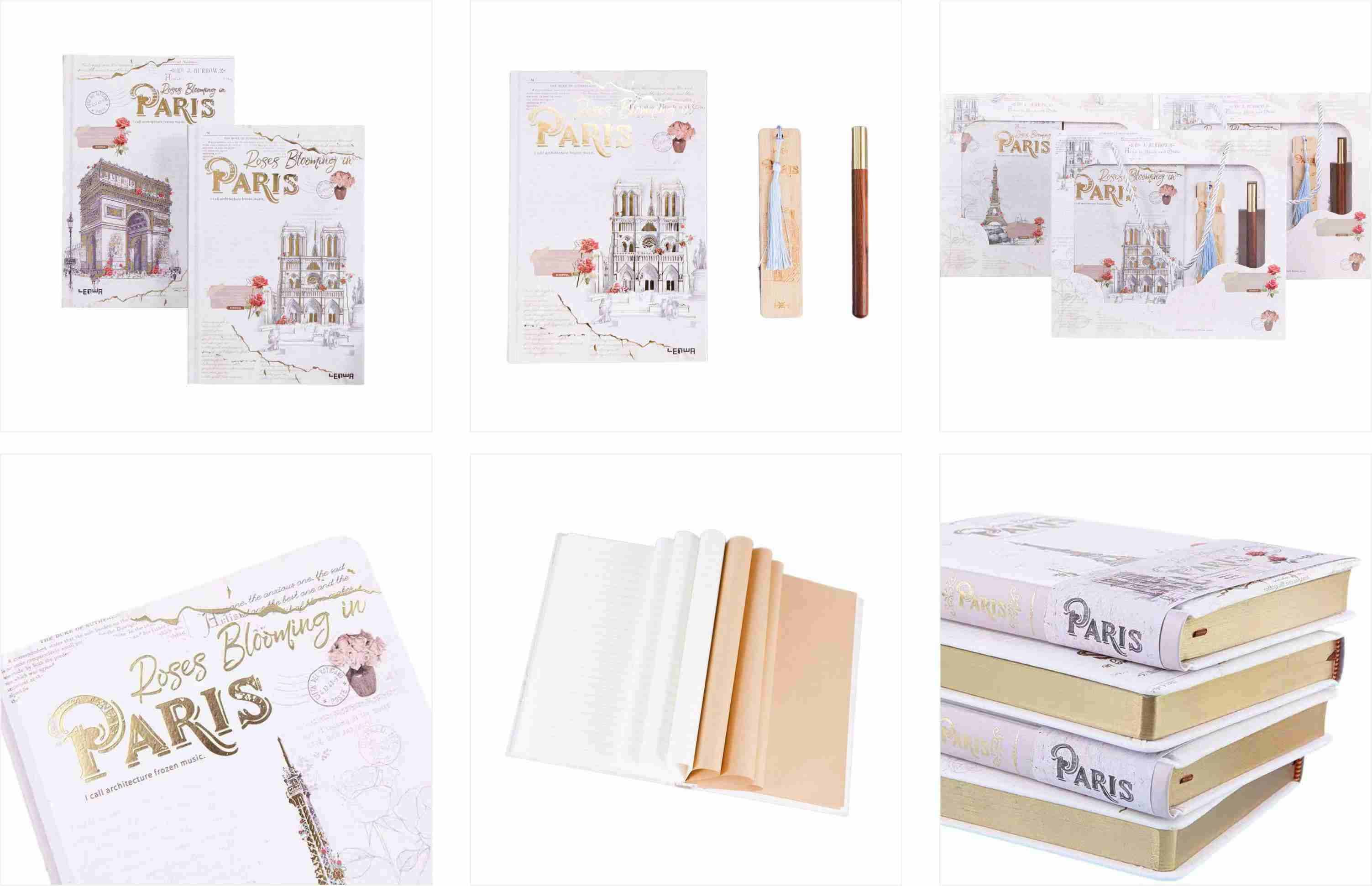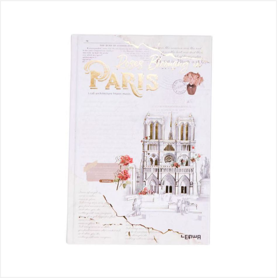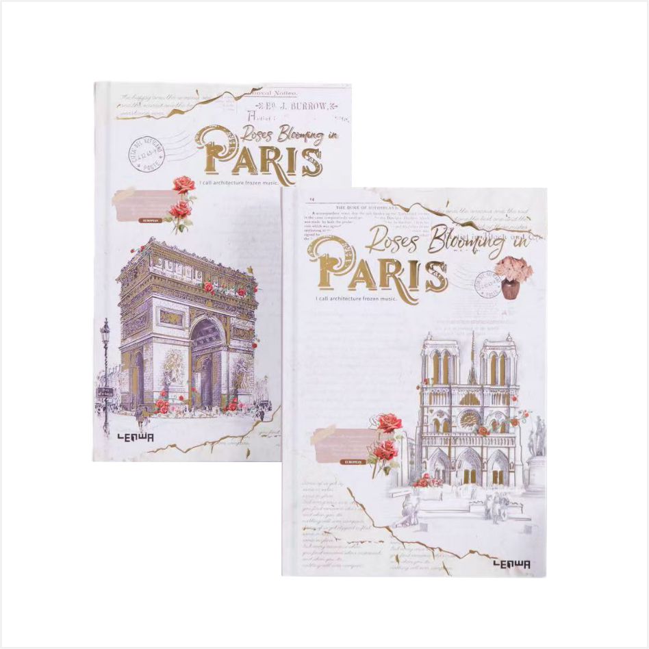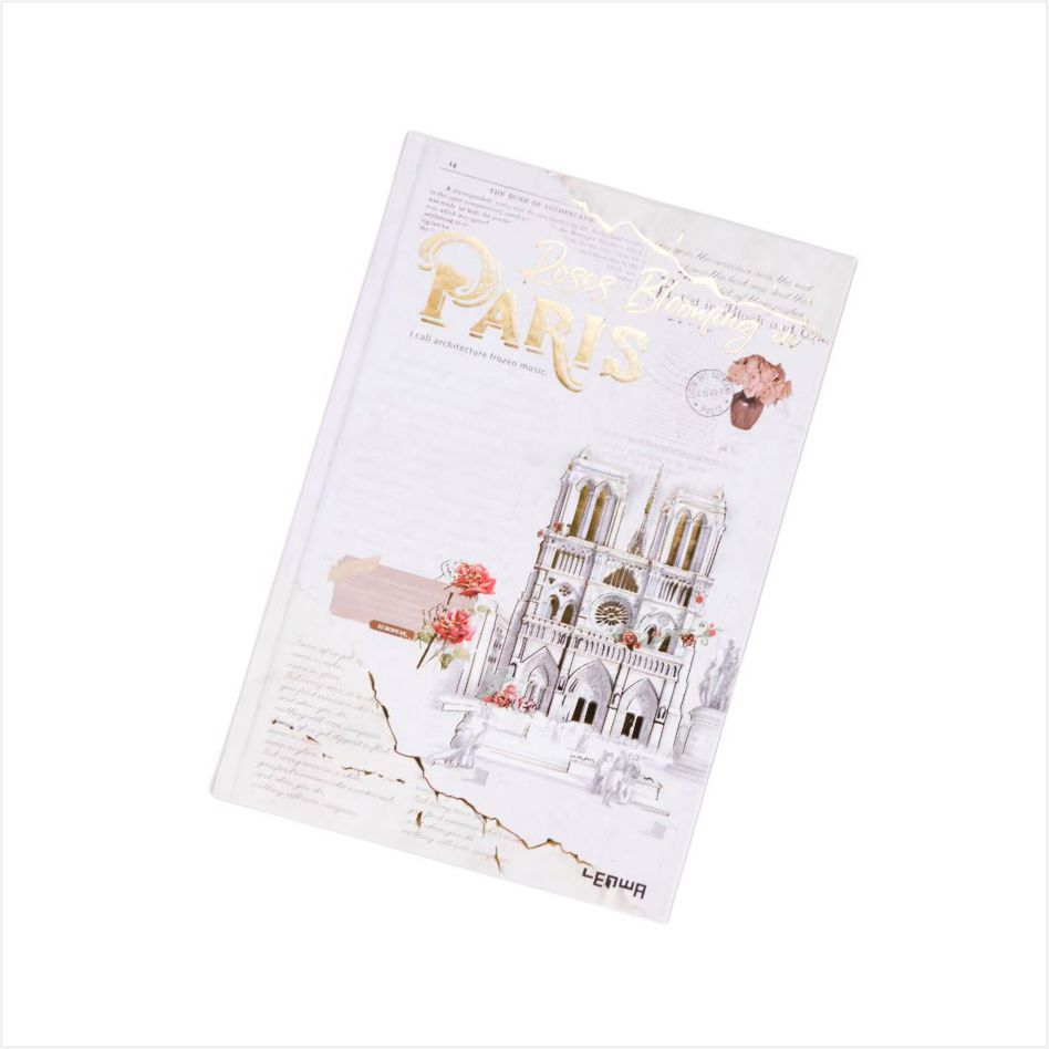 Sampul ini mempunyai bangunan ikonik seperti Notre Dame Cathedral dan Arc de Triomphe, dengan mawar dan unsur -unsur setem vintaj, memancarkan suasana artistik yang kuat. Bingkai halaman dalaman mengamalkan teknologi bersalut emas, menambah rasa kemewahan. Reka bentuk garis mendatar sesuai untuk penulisan harian, dan kertas dua warna coklat-coklat memastikan bahawa penulisan itu lancar dan dakwat-sama ada rekod kasual atau buku harian, setiap halaman penuh dengan atmosfera.